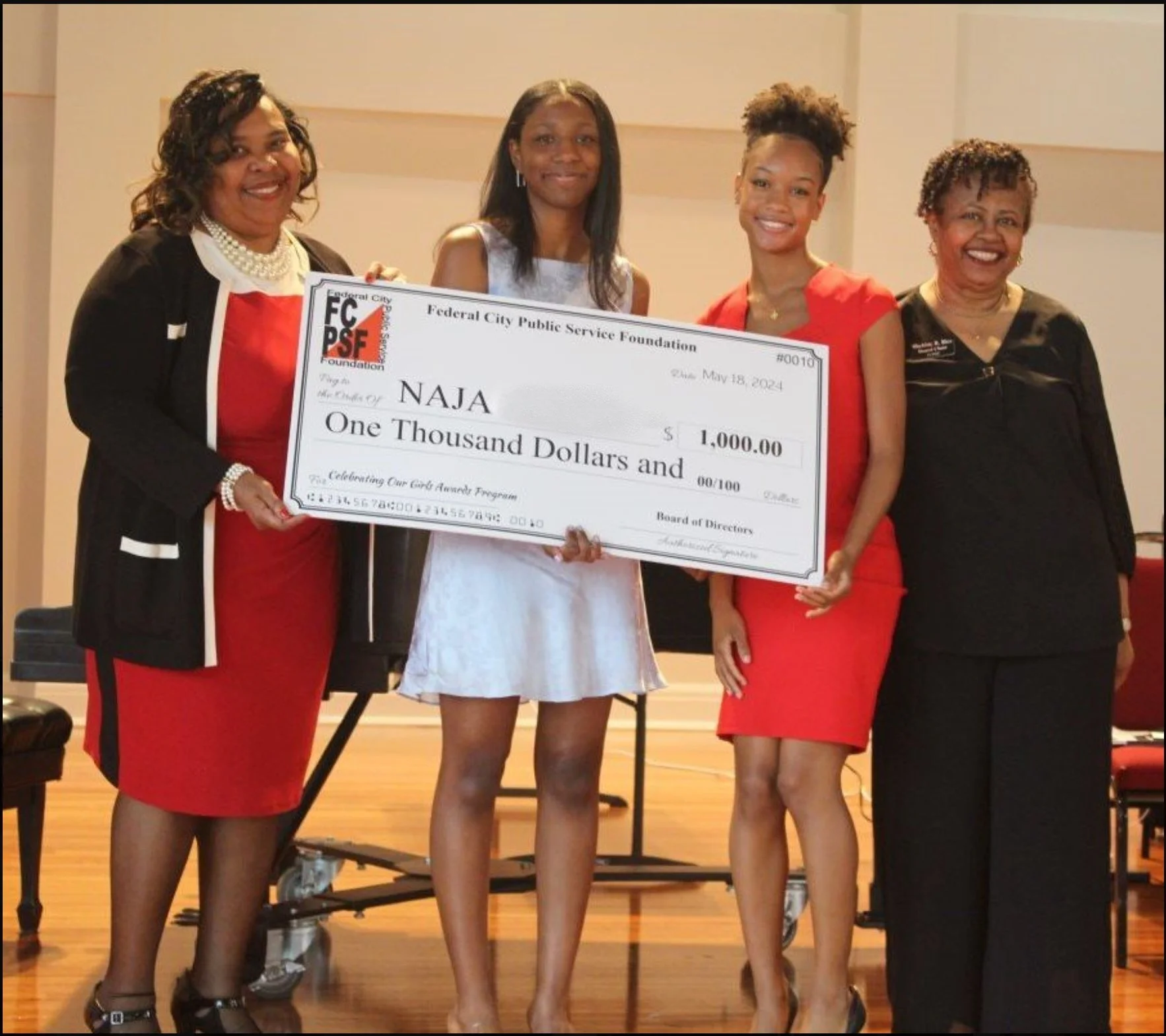 The Federal City Public Service Foundation (FCPSF) sixth Celebrating Our Girls Awards program was held on Saturday, April 12, 2025 in Washington, D.C., FCPSF presented a check for $1,000.00 and a plaque each to this year’s honorees. Dr. Jowava Leggett Harrison Morrow Book Scholarships were awarded to two graduating high school seniors, receiving $500 to purchase college books. Congratulations to our recipients!